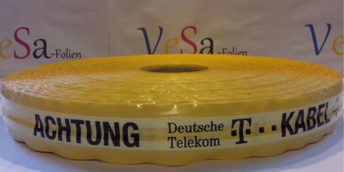 Die eingearbeiteten Polypropylen-Streifen mit Sollbruchstellen sorgen dafür, dass das Band an den vorbestimmten Stellen reißt und so den Baggerführer frühzeitig warnt. Beschädigungen durch Baggerarbeiten sind so nahezu ausgeschlossen.